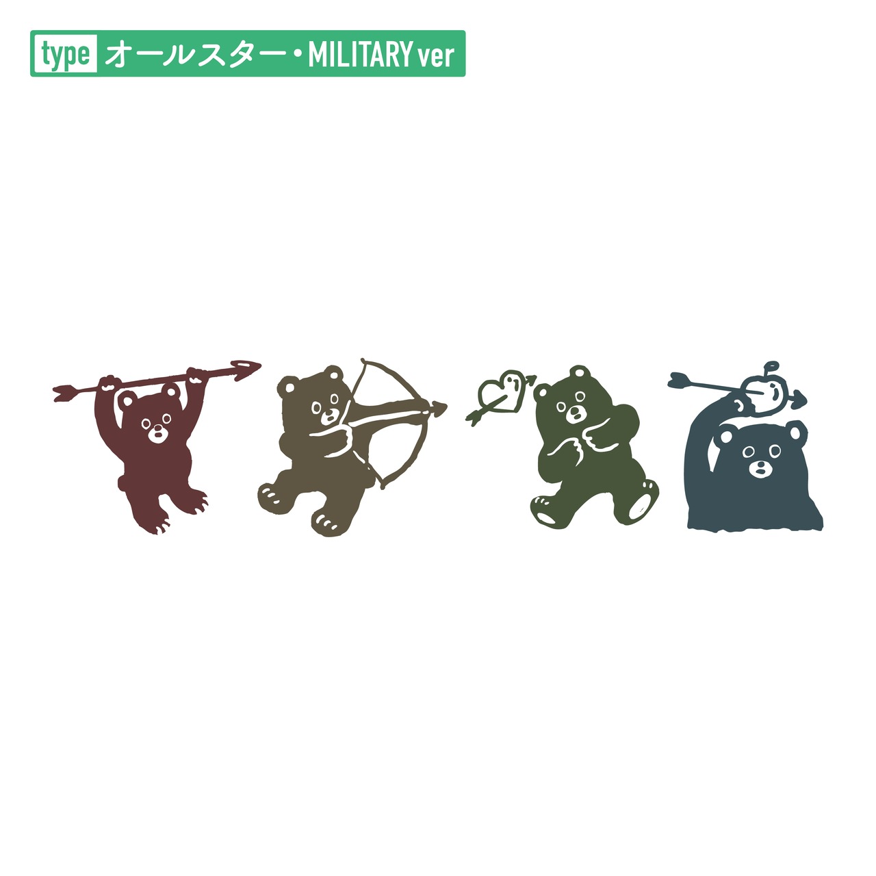 ミリタリーカラー“熊が矢”オールスターをプリント!